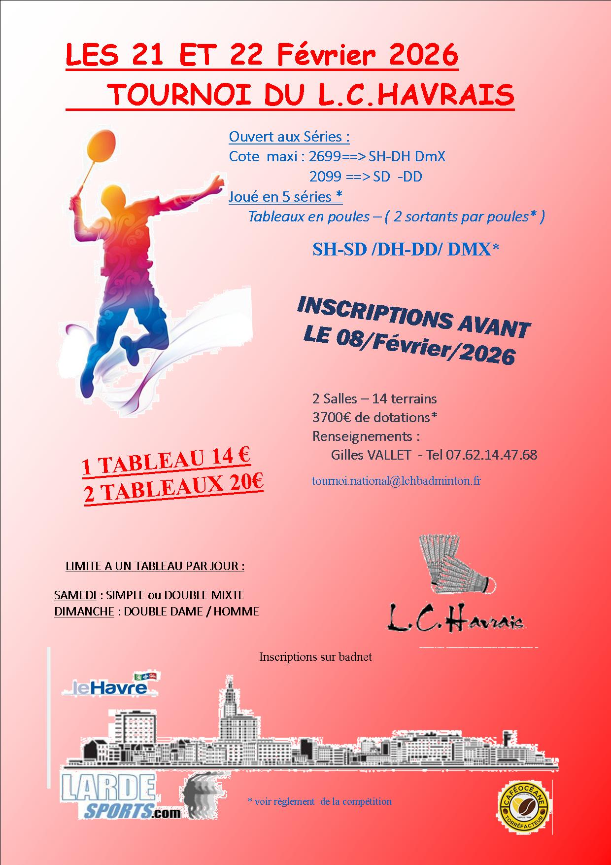 compétitions en cinq disciplines Simple homme ; Simple dame : Double homme ; Double Dame et Double mixte du classement de N3 à NC reparti en lots de cinq séries .